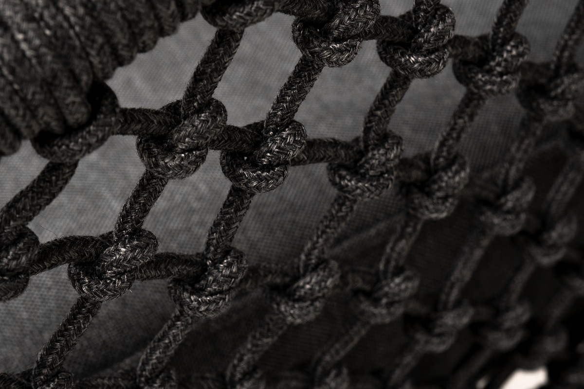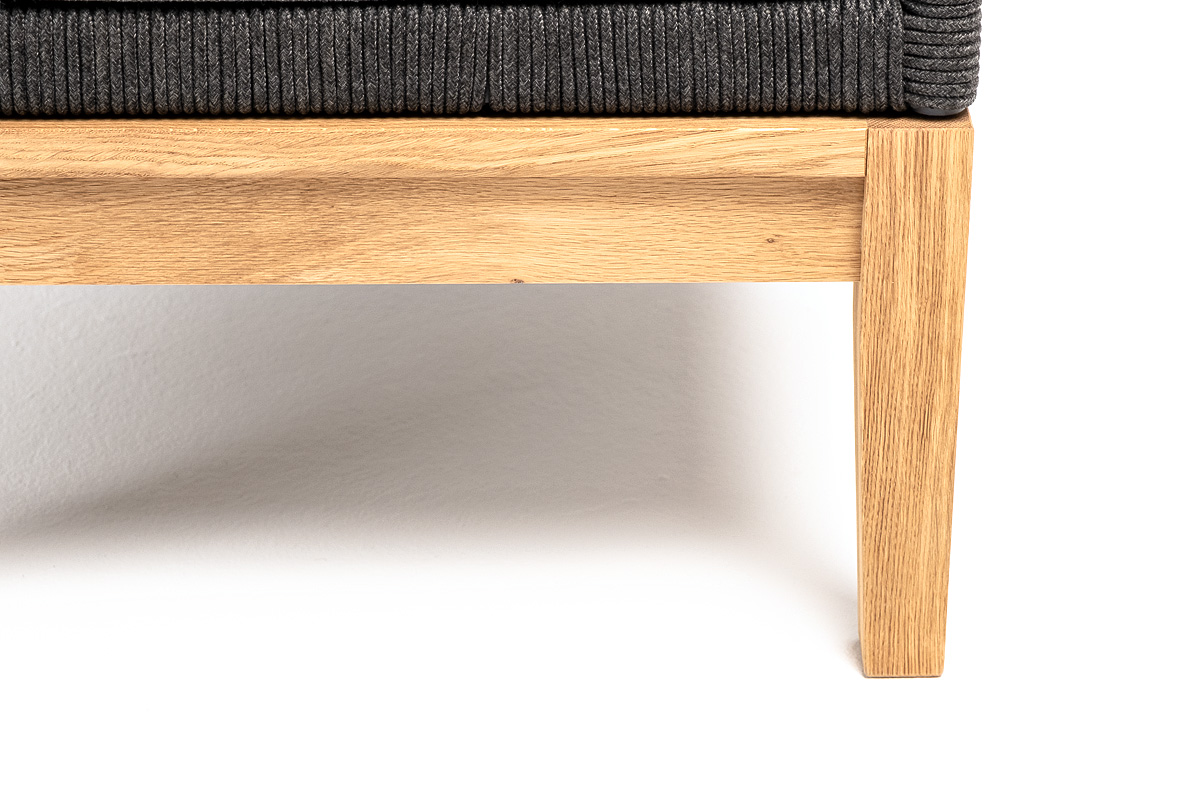 На боковинах - оплетка из синтетических лент, выполненных из полиэфирных волокон высокой прочности. Цвет плетения - темно-серый. Вид плетения - узелковый, создавался вручную. Основание - дуб.