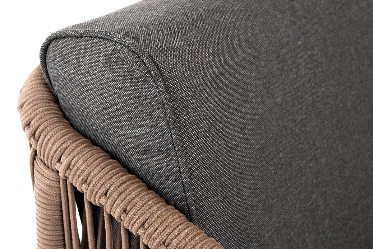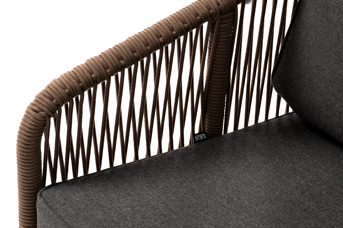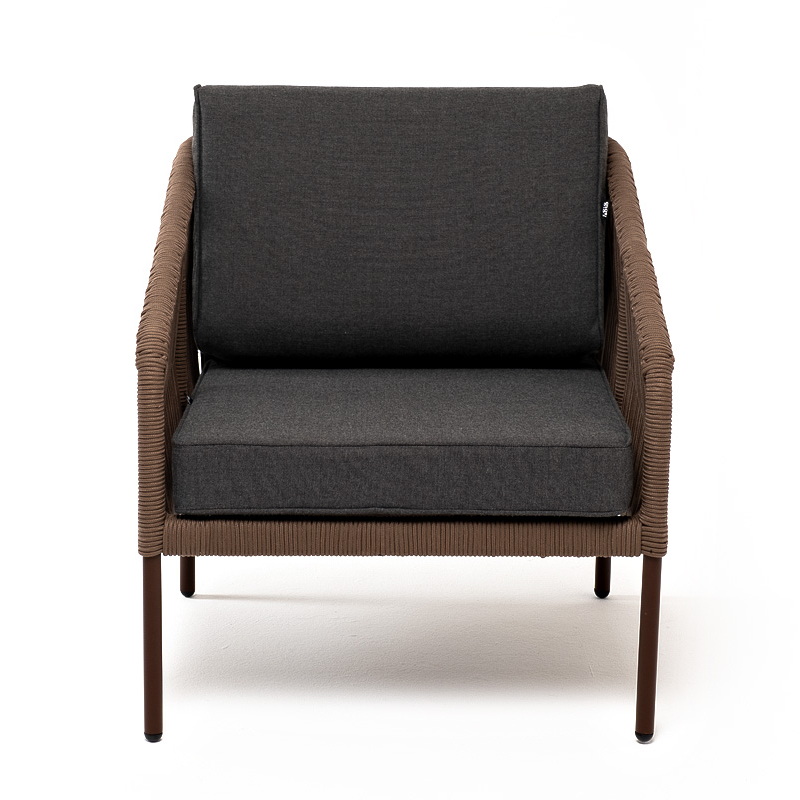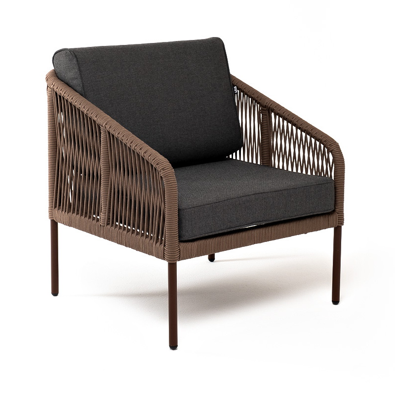 "Канны" кресло плетеное из роупа, каркас алюминий коричневый (RAL8016) муар, роуп коричневый круглый, ткань темно-серая 027